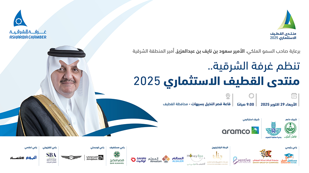 تُعد محافظة القطيف إحدى المحافظات الواعدة اقتصاديًا، بفضل موقعها الاستراتيجي الذي يتوسط مدن الدمام والجبيل ورأس تنورة ورأس الخير، وما تتميز به من خارطة استثمارية متنوّعة تُهيئ لها أن تكون بيئةً ثريّة بالفرص أمام القطاع الخاص في المجالات التجارية والصناعية والخدمية واللوجستية والزراعية. وانطلاقًا من هذه المقومات، يأتي منتدى القطيف الاستثماري 2025 امتدادًا لنجاحات النسخ السابقة واستمرارًا لجهود غرفة الشرقية في دعم وتطوير النشاط الاقتصادي والتنموي وتعزيز دور القطاع الخاص، بوصفه منصة فاعلة للإسهام في صياغة مستقبل التنمية الاقتصادية في المنطقة الشرقية.