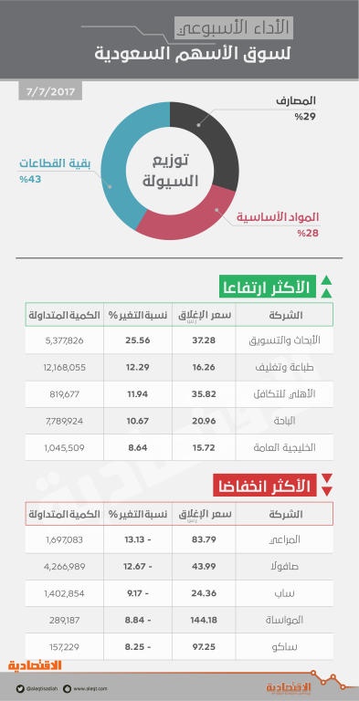 «المواد الأساسية» تضغط على الأسهم السعودية .. والسيولة عند 3.5 مليار ريال